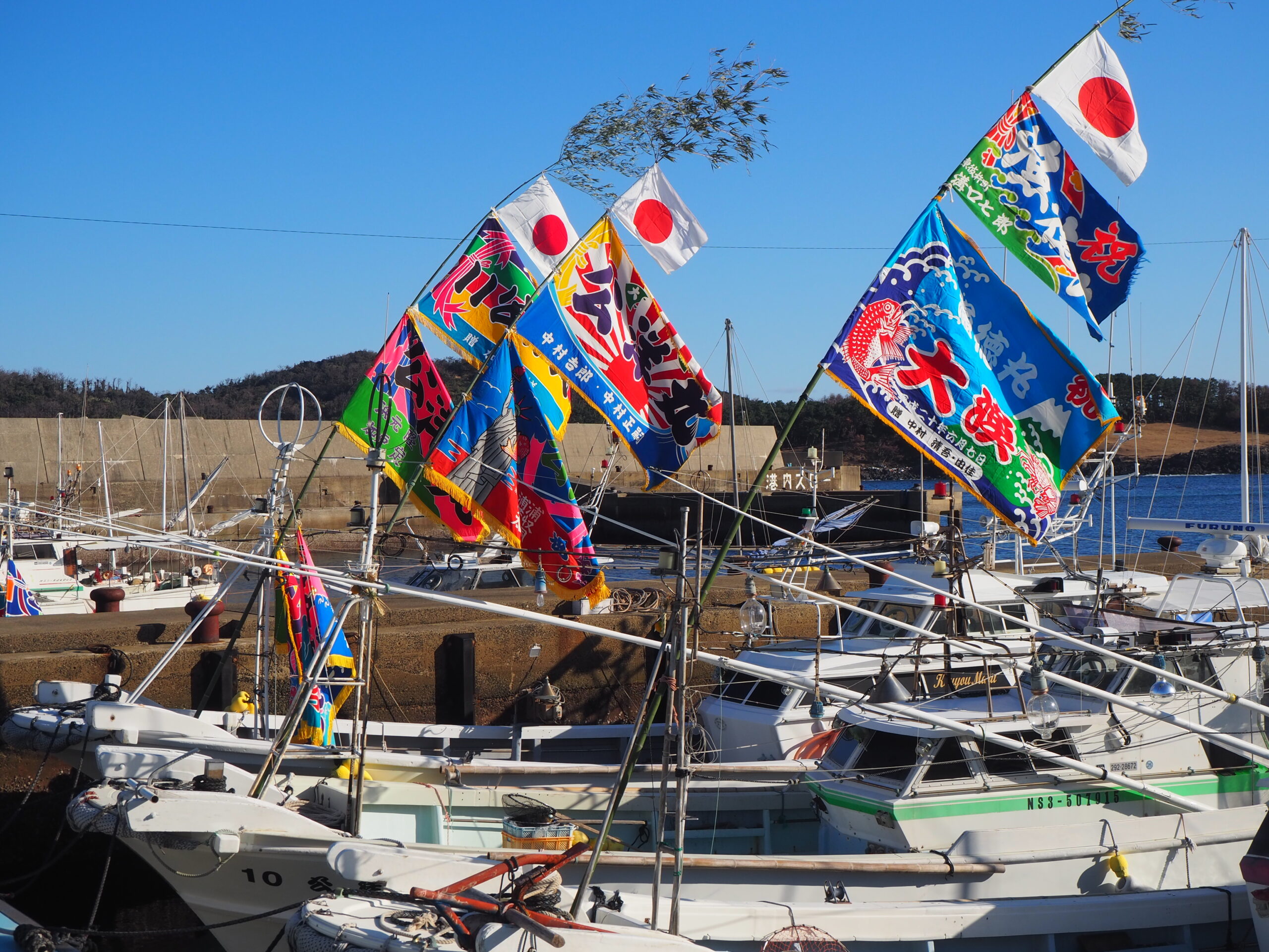 There are some years in life when you want to get away from it all and spend your New Year’s holiday somewhere remote (and hopefully beautiful). For some of our guests, Ojika Island is that place. During this time of the year, you might be the only tourist on the island, which seems to be asleep with locals tucked away at home in front of the TV. This is also the time of the year when the boats that dot the island’s shores are decorated with very festive-looking flags. These are called Tairyō-bata (大漁旗).