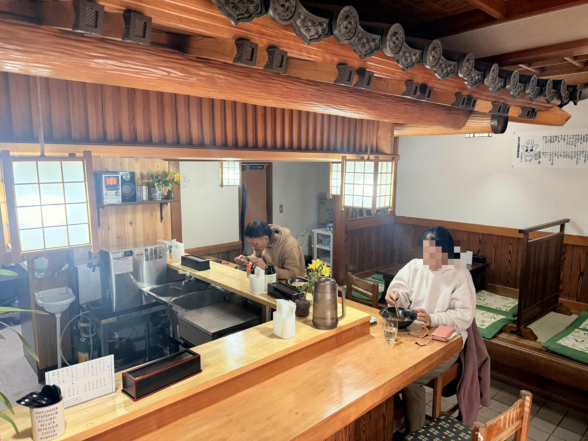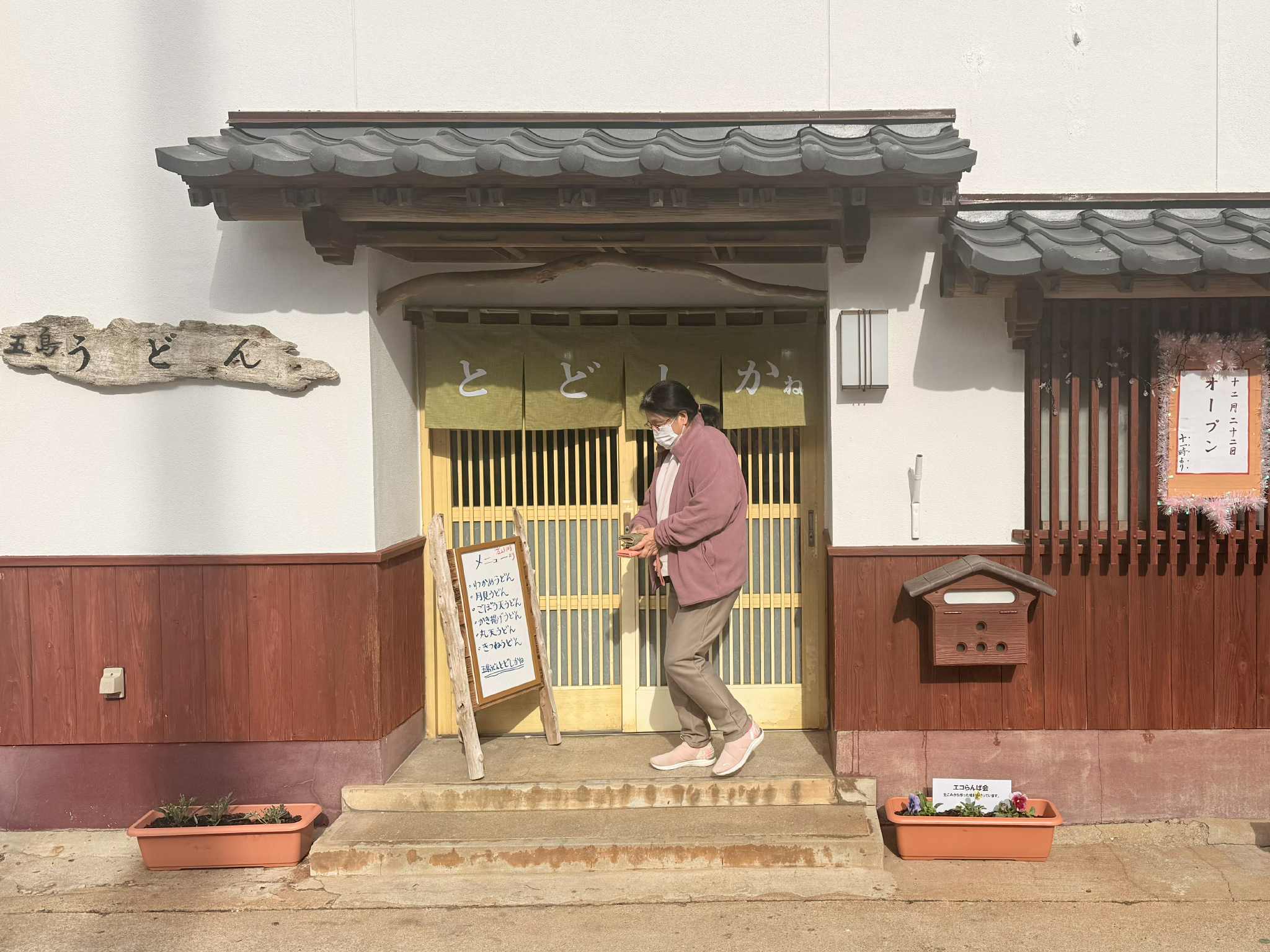 A new lunch place serving the famous Goto Udon. Unlike regular Udon noodles, Goto Udon ones are coated in camellia oil, which adds to their firmness and smoothness. The simple noodle dishes are complemented by the traditional Japanese interior and friendly staff. Located a couple of minutes away from the ferry terminal, here you can have a quick "slurp" before departing to Fukuoka on the 1 PM ferry.