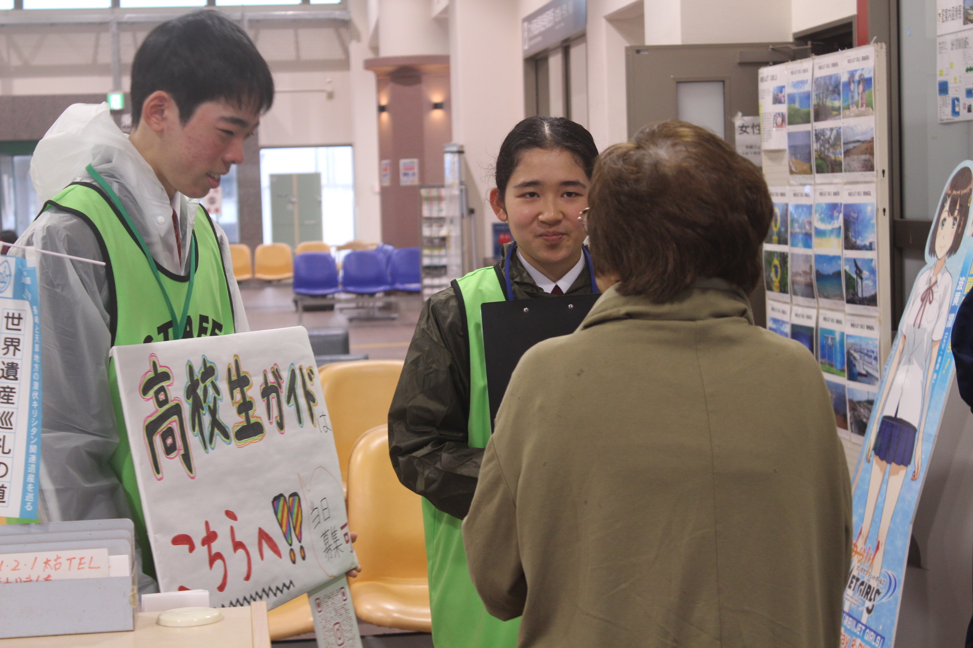 小値賀港ターミナル発・歴史民俗資料館着、地元の高校生がつきっきりでスタンプラリーをしながら小値賀島の笛吹の町をご案内するツアーとなります。