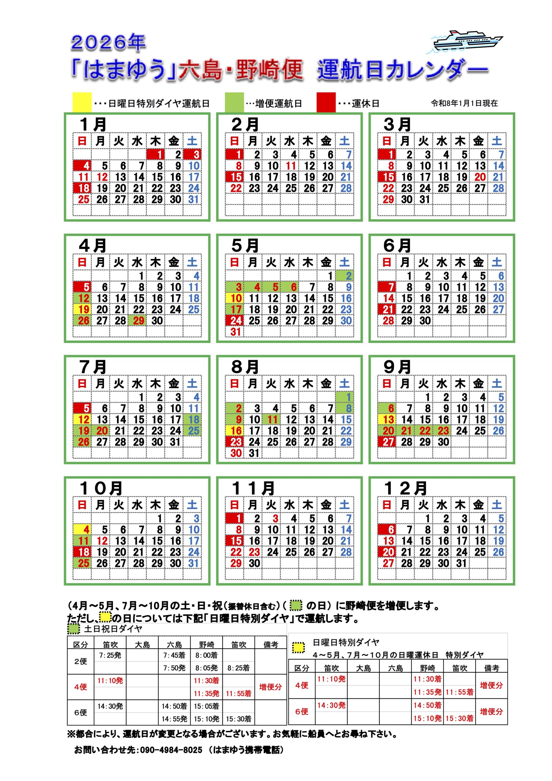 | 船名 Ship | 小値賀 Ojika | 野崎 Nozaki | 小値賀 Ojika |
